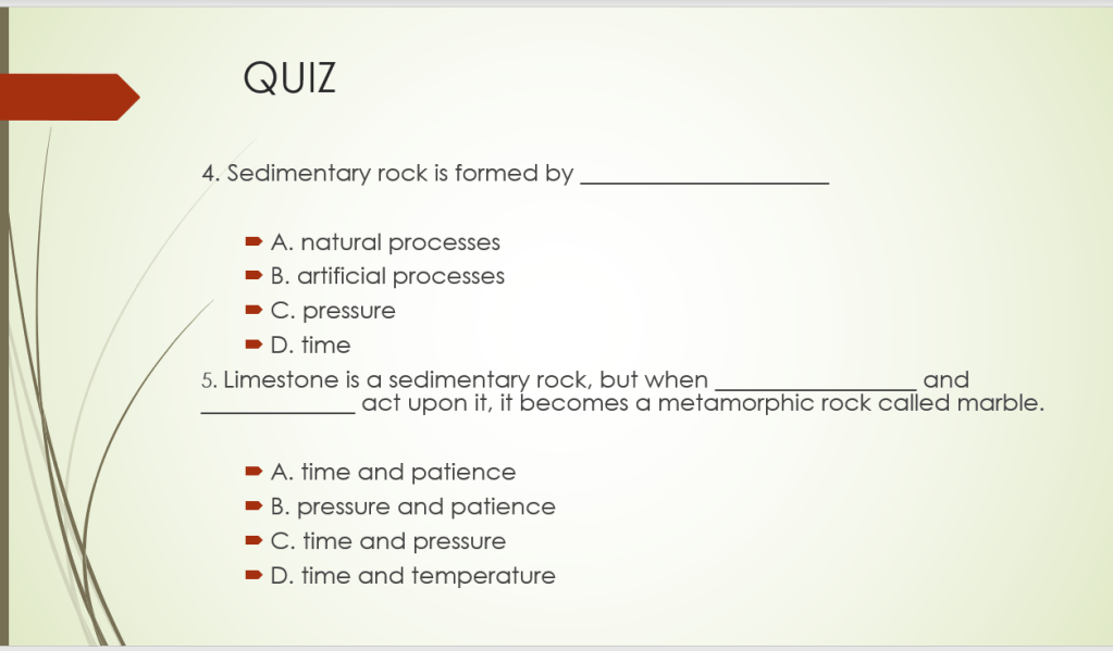 Rocks and Soils Posted byscience worldMarch 29, 2020Posted inUncategorized https://cutt.ly/9txoohr Extended Task https://www.ducksters.com/science/rocks.php https://www.helpteaching.com/questions/Soil/Grade_3 http://www.ecoallstarkids.com/Soil.aspx Share this: Share on X (Opens in new window) X Share on Facebook (Opens in new window) Facebook Like Loading... Related